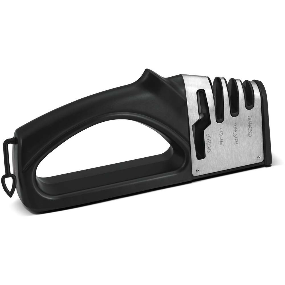 Trzystopniowa ostrzałka do noży z ostrzałką do nożyczek wyprodukowana z tworzywa ABS z delikatną powierzchnią i podstawą antypoślizgową.