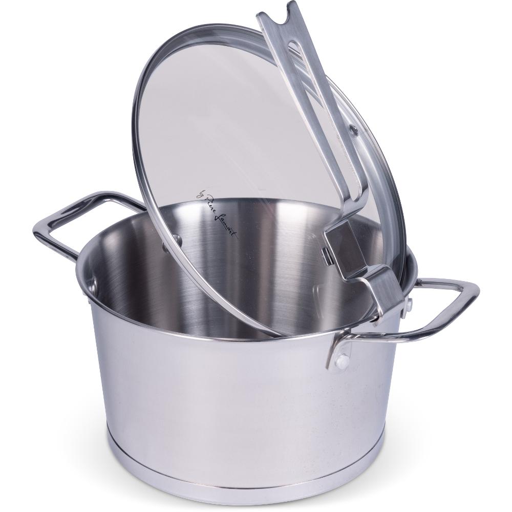 Naczynie nierdzewne ceramiczny o nowoczesnym wzornictwie, wyprodukowane ze stali nierdzewnej pierwszej klasy, wyposażone w grube dno kanapkowe i niezwykle eleganckie uchwyty zapewniające większe bezpieczeństwo, funkcjonalność i wygodę.