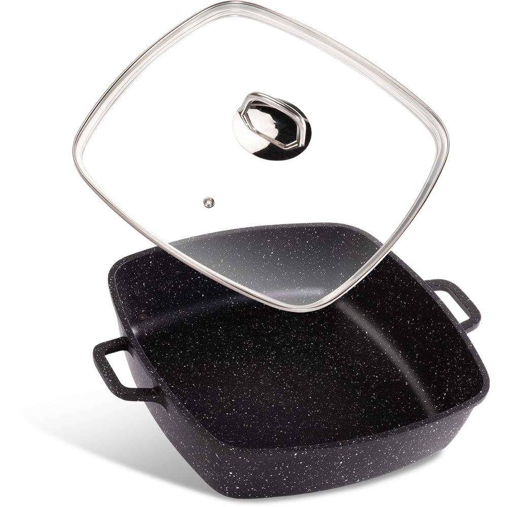 BRYTFANNA ZE SZKLANĄ POKRYWĄ 28 X 28CM CZARNY