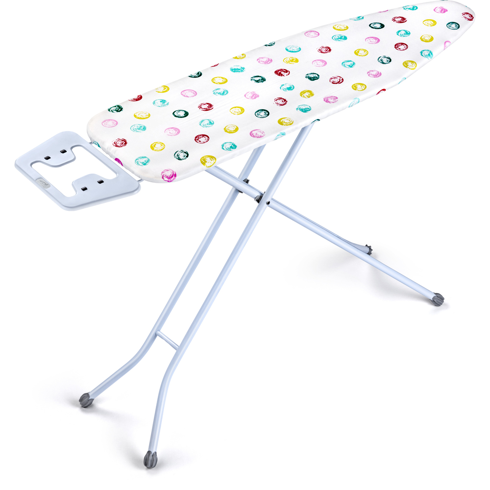 Deska ma regulowaną wysokość z półką do odstawiania żelazek parowych.