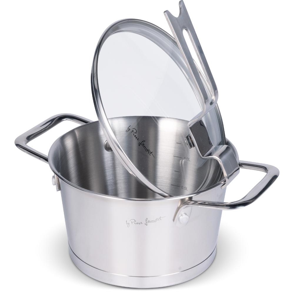 Naczynie nierdzewne ceramiczny o nowoczesnym wzornictwie, wyprodukowane ze stali nierdzewnej pierwszej klasy, wyposażone w grube dno kanapkowe i niezwykle eleganckie uchwyty zapewniające większe bezpieczeństwo, funkcjonalność i wygodę.